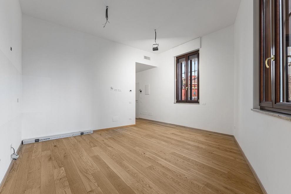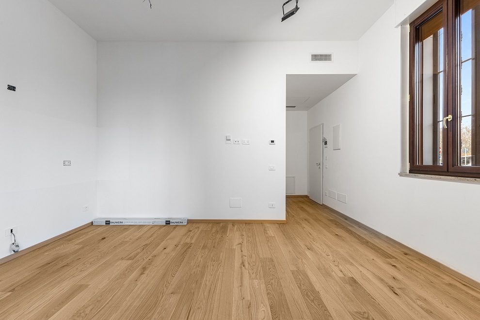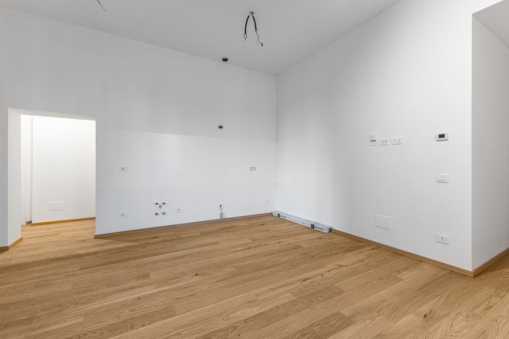 Le finiture sono di livello: parquet in rovere in tutti gli ambienti, gres di alta gamma nel bagno, serramenti in PVC ad alto isolamento termoacustico, porta blindata e porte interne di primaria marca.