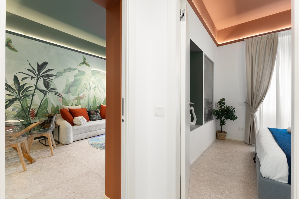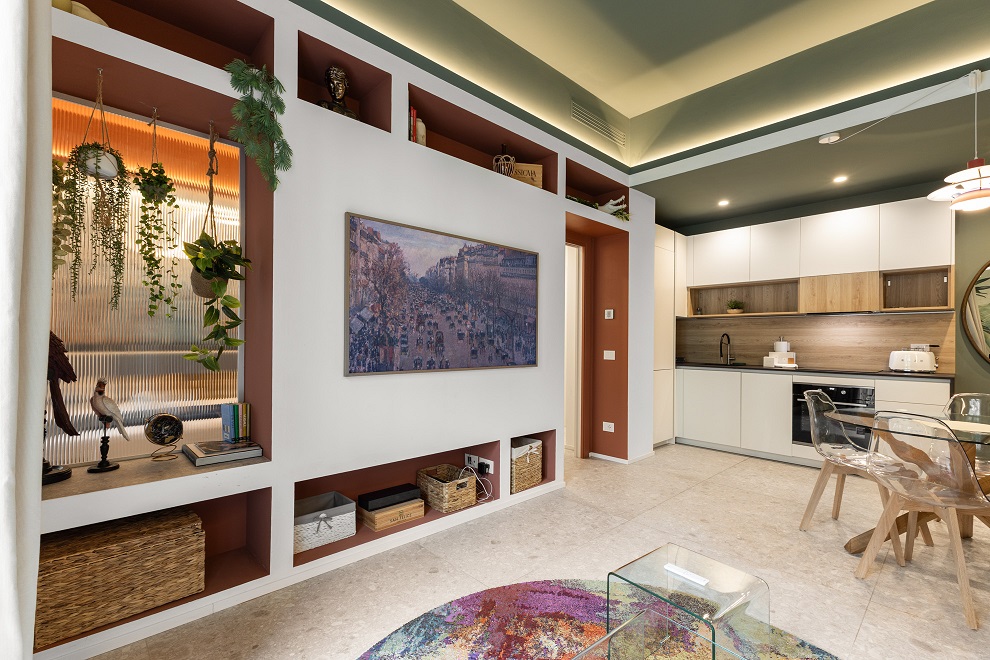 L’appartamento, posto al primo piano con ascensore di un palazzo recentemente valorizzato dal Bonus 110% con facciate interne ed esterne completamente rinnovate, rappresenta un bilocale unico nel suo genere.
