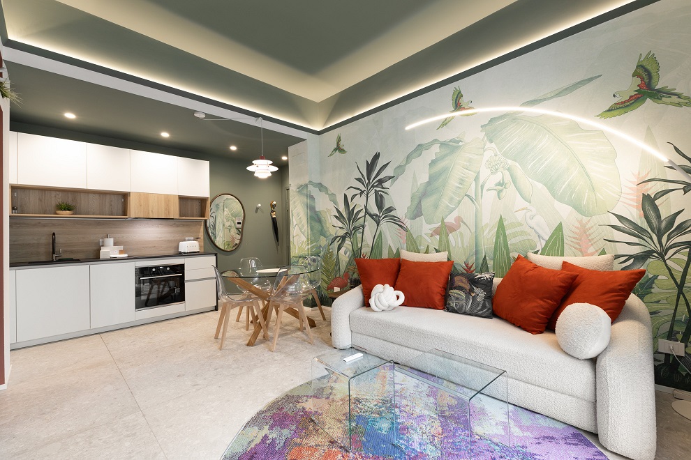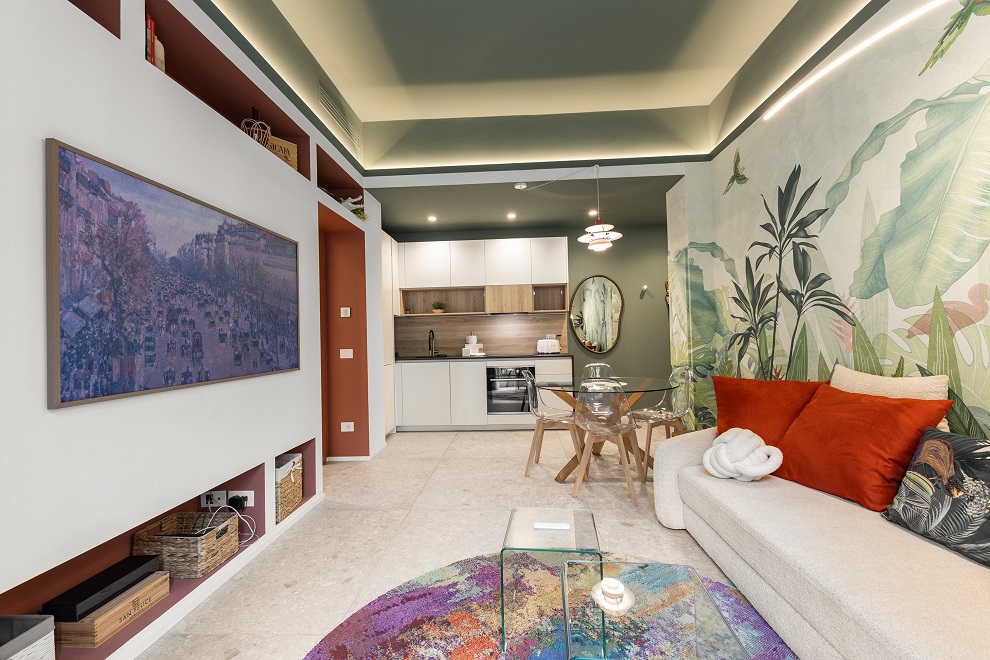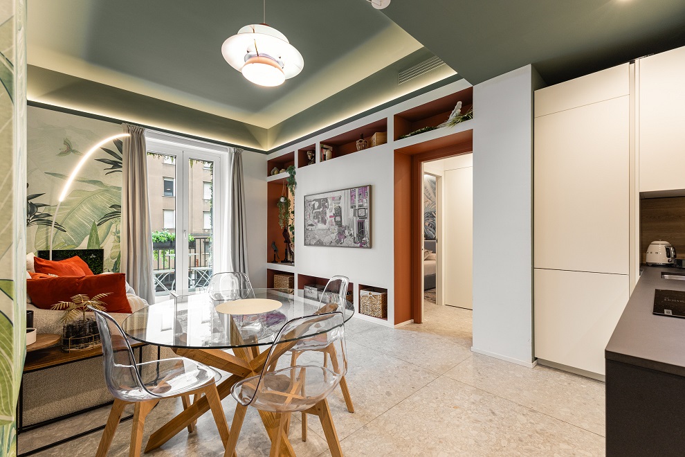 L’immobile si compone di un ingresso, un soggiorno living con cucina, una camera da letto matrimoniale, ampio bagno con doccia emozionale e lavanderia; e si presenta come un connubio perfetto tra design contemporaneo e charme milanese.