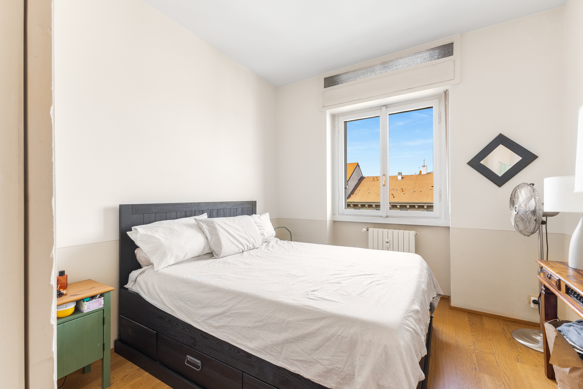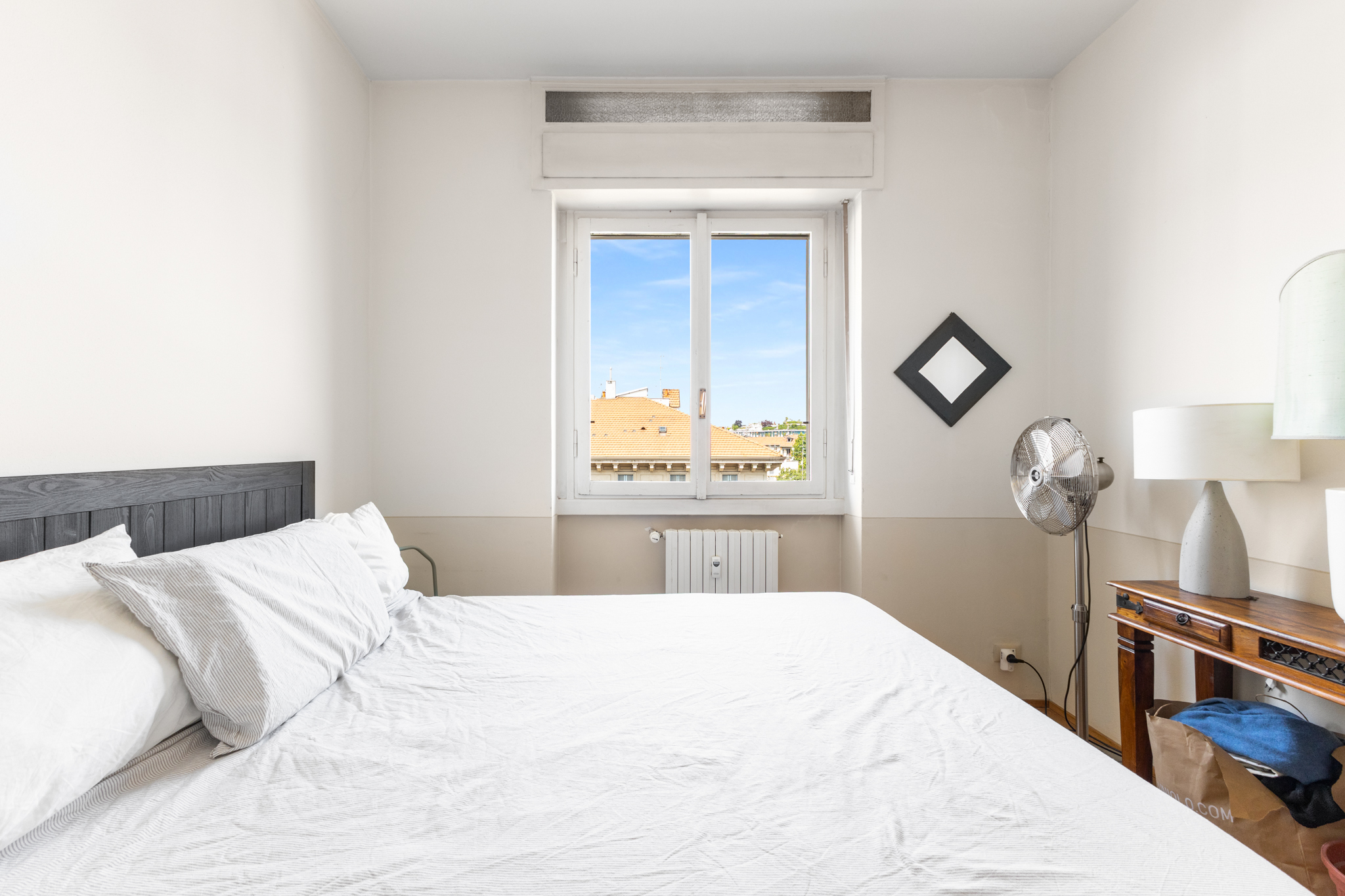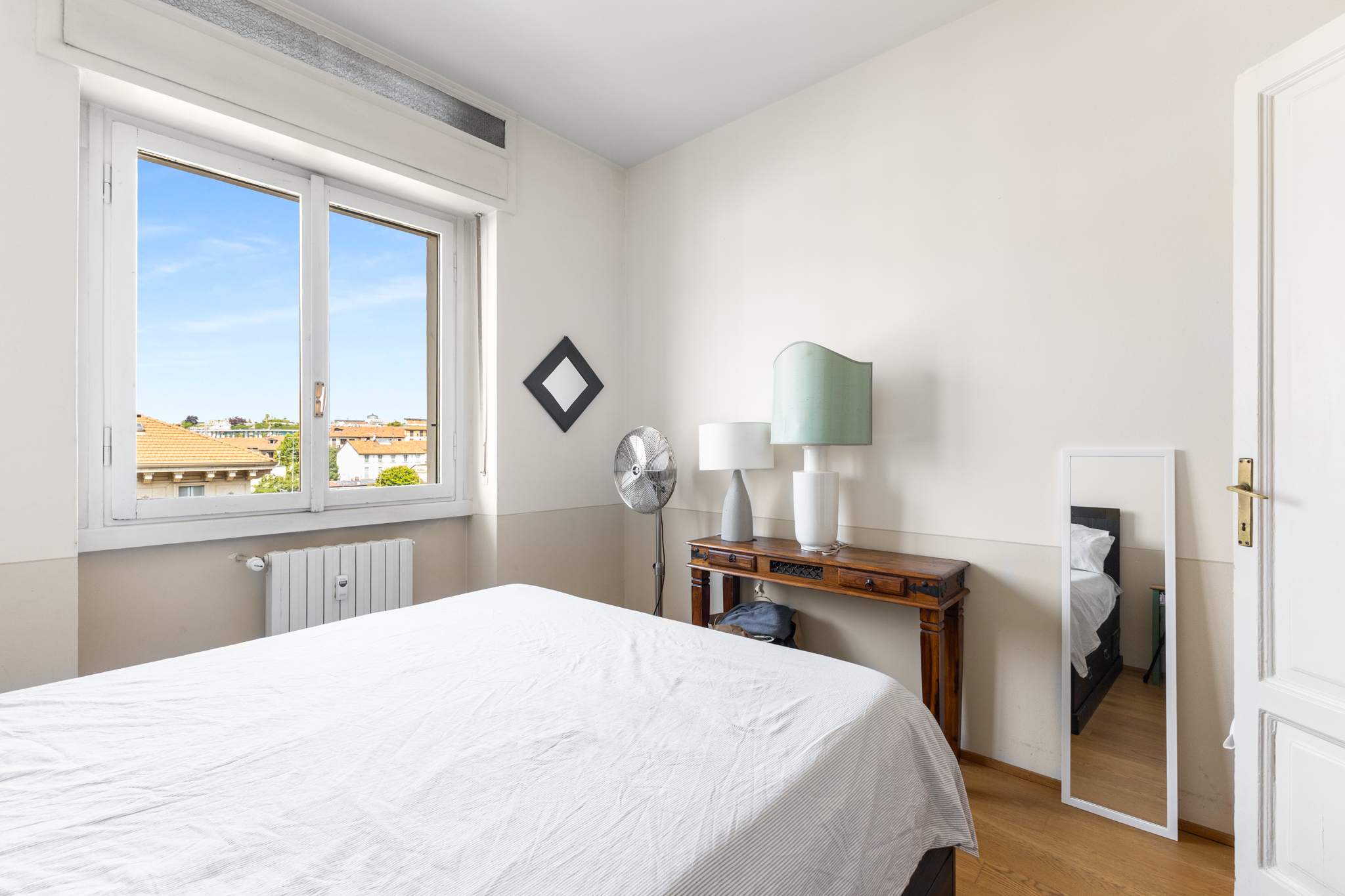 Riscaldamento centralizzato con termovalvole ed esposizione su via Washington.