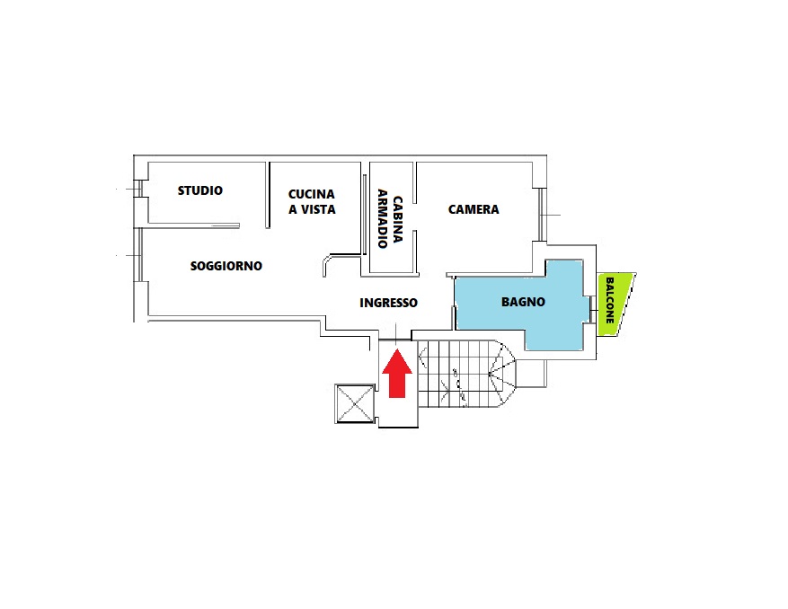 La zona notte ospita una ampia camera da letto con cabina armadio, mentre il bagno finestrato, arricchito da un balcone, completa la soluzione con funzionalità e comfort.