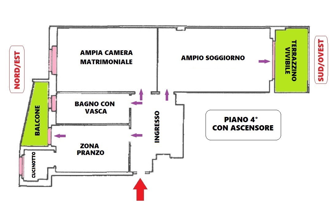 80 mq. QUARTO PIANO CON ASCENSORE.
