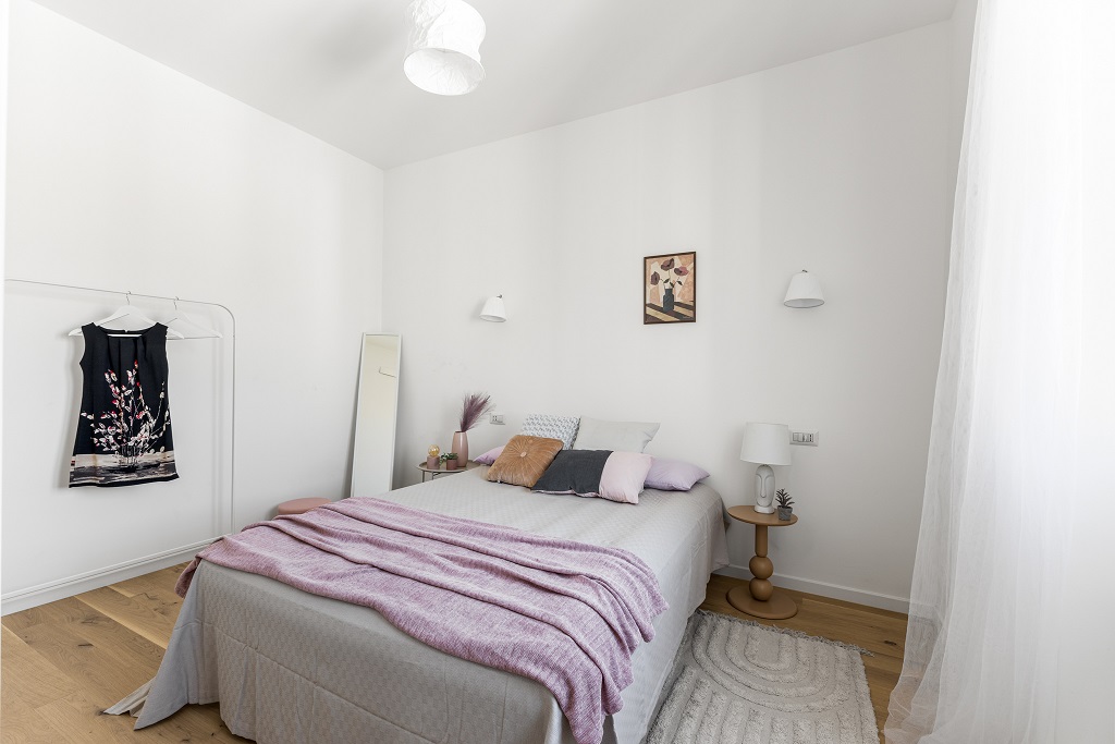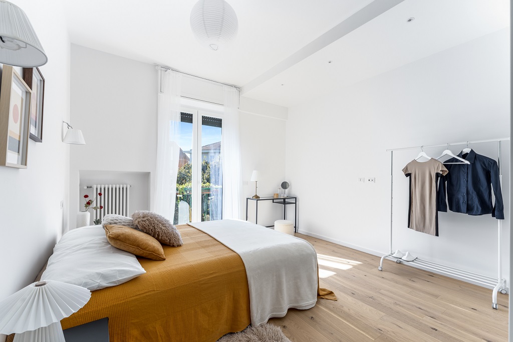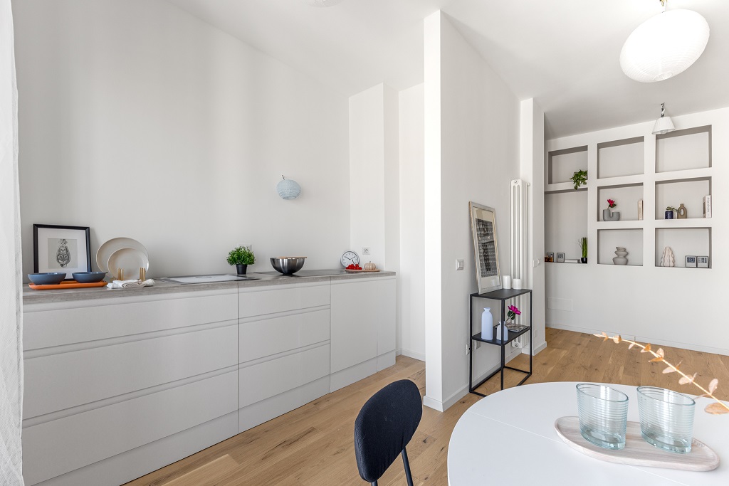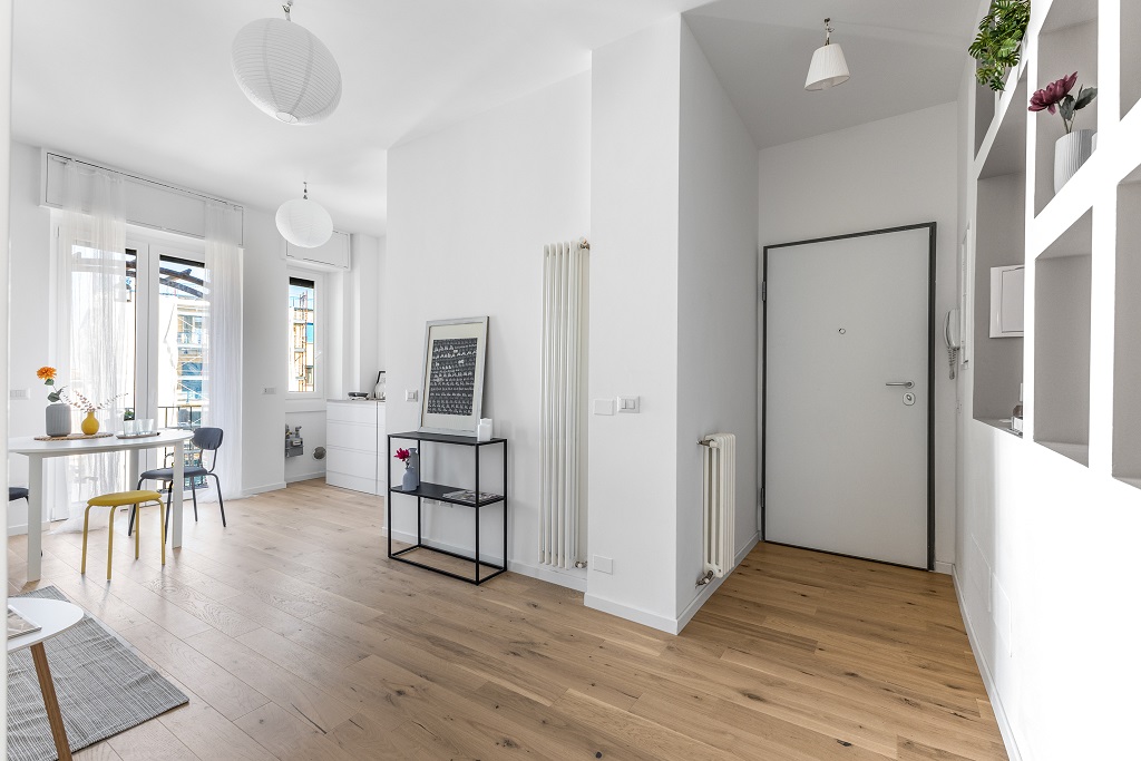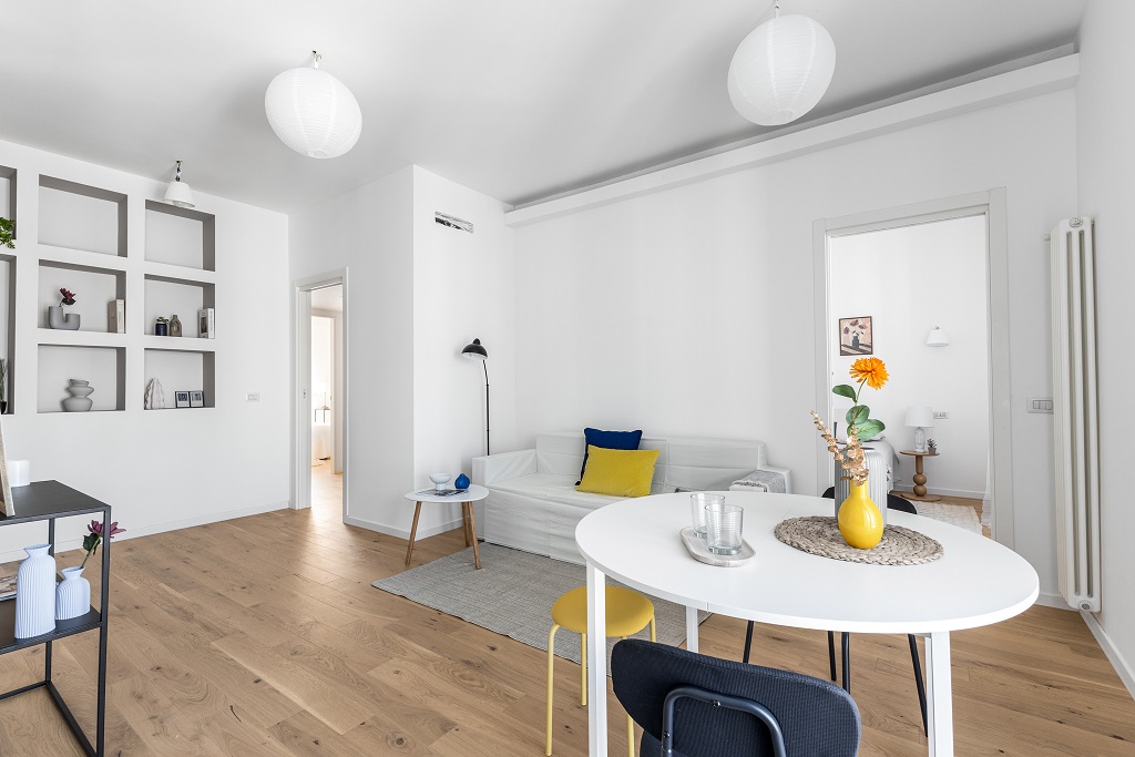 L’appartamento si presenta completamente ristrutturato con finiture moderne e ambienti curati nei minimi dettagli.