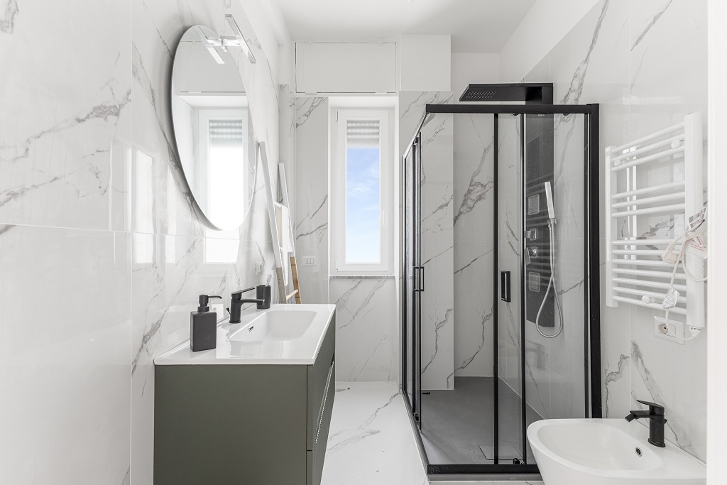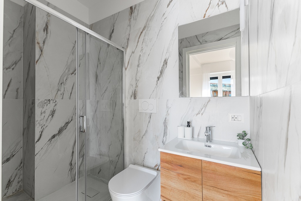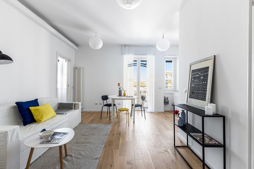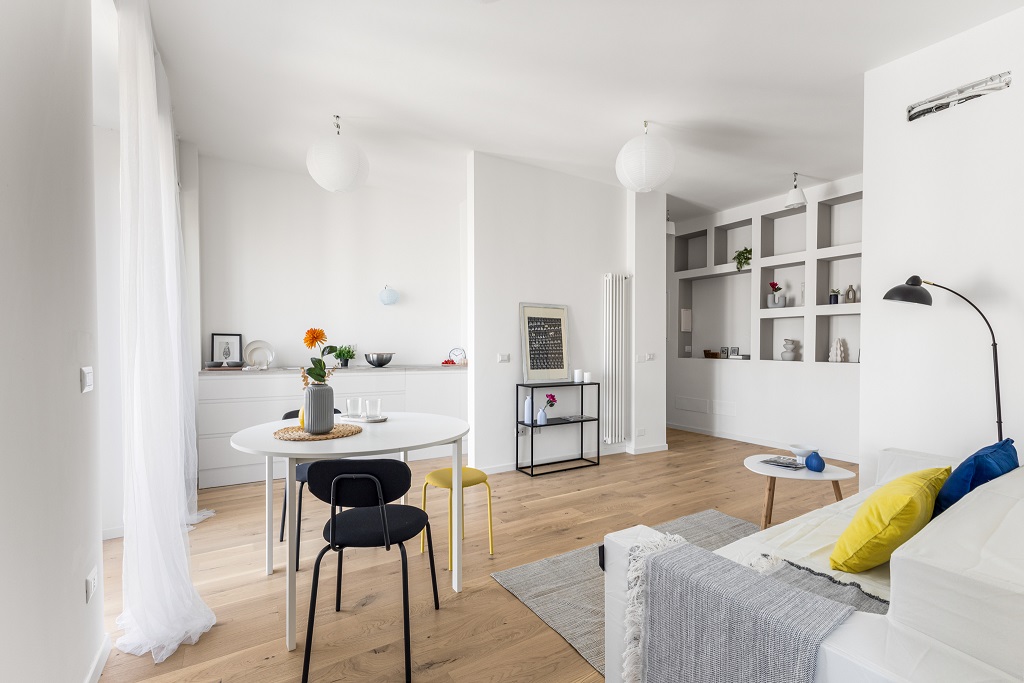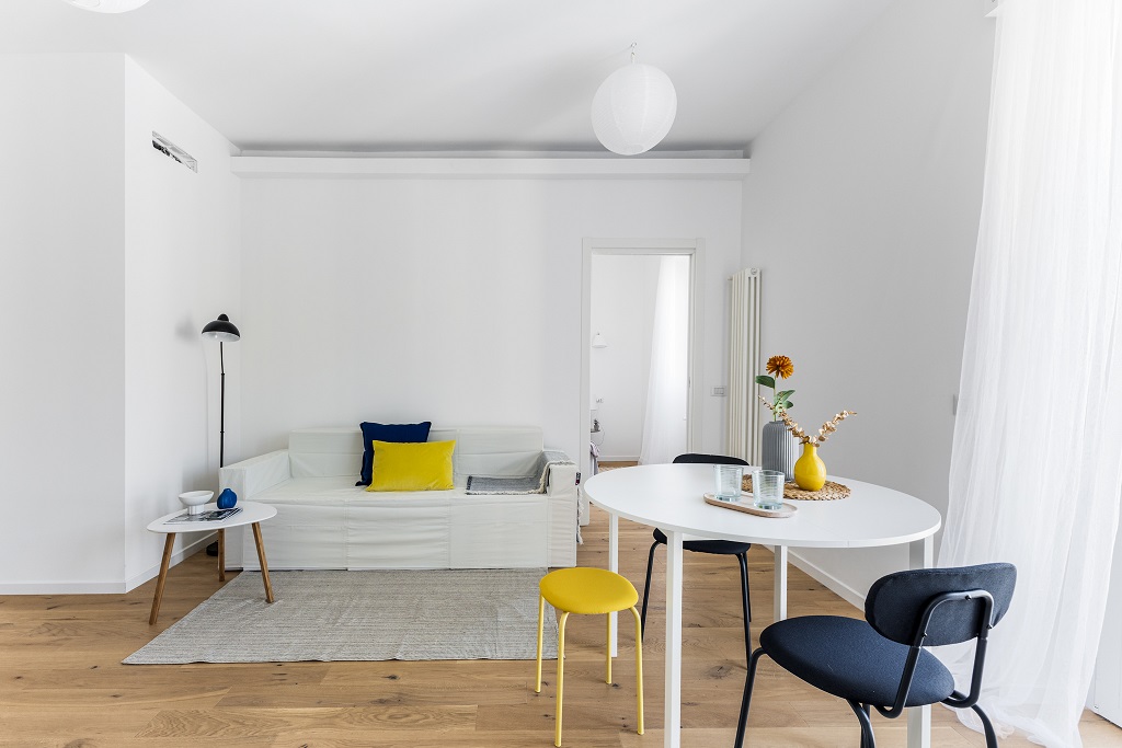 L’appartamento si presenta completamente ristrutturato con finiture moderne e ambienti curati nei minimi dettagli.