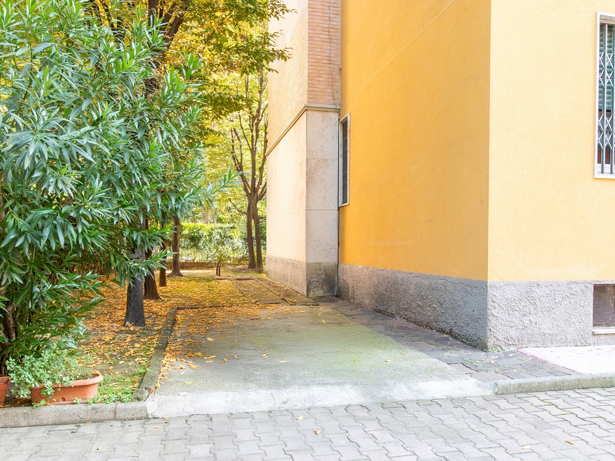 In via Mario Morgantini, traversa di via Rembrandt, in stabile civile ristrutturato del 1956 con verde condominiale e facciate esterne da poco rifatte, appartamento di 92 mq al piano rialzato rientrante rispetto al marciapiede esterno composto da: