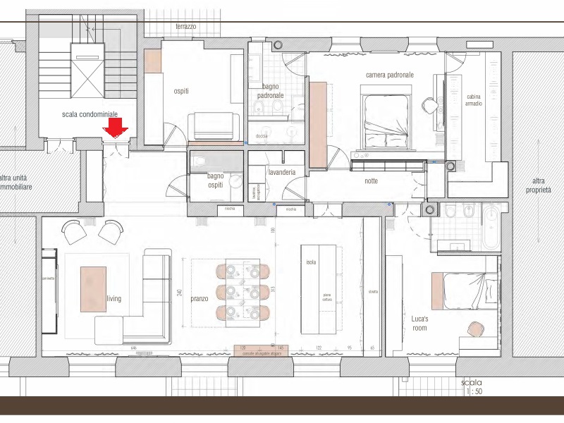 La proprietà viene proposta con arredi fissi e su misura coerenti con lo stile dell’abitazione (elenco disponibile in visita).