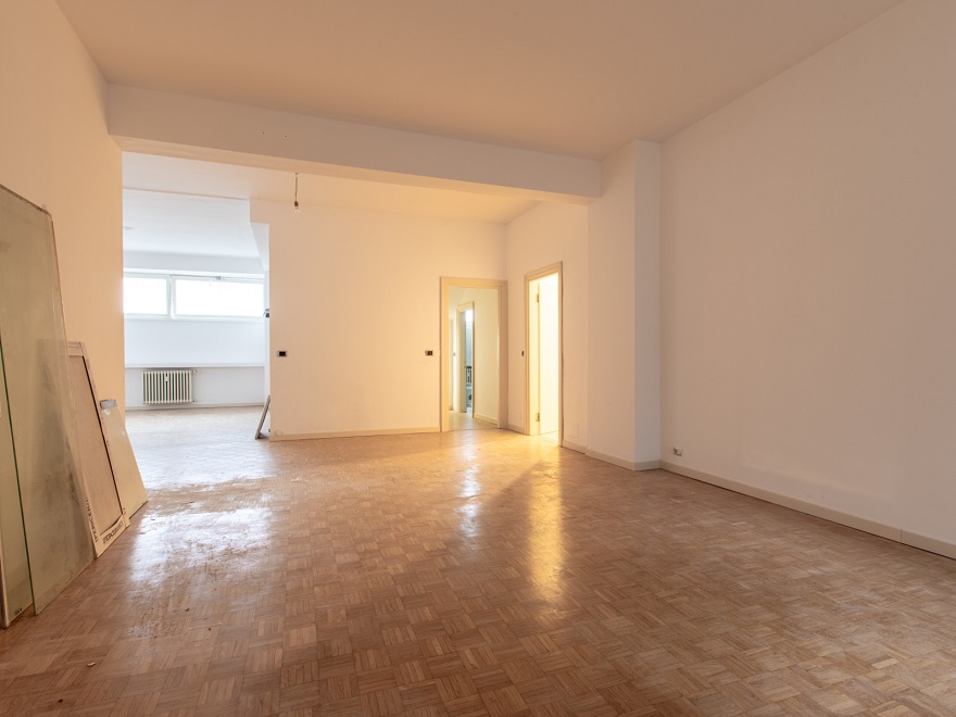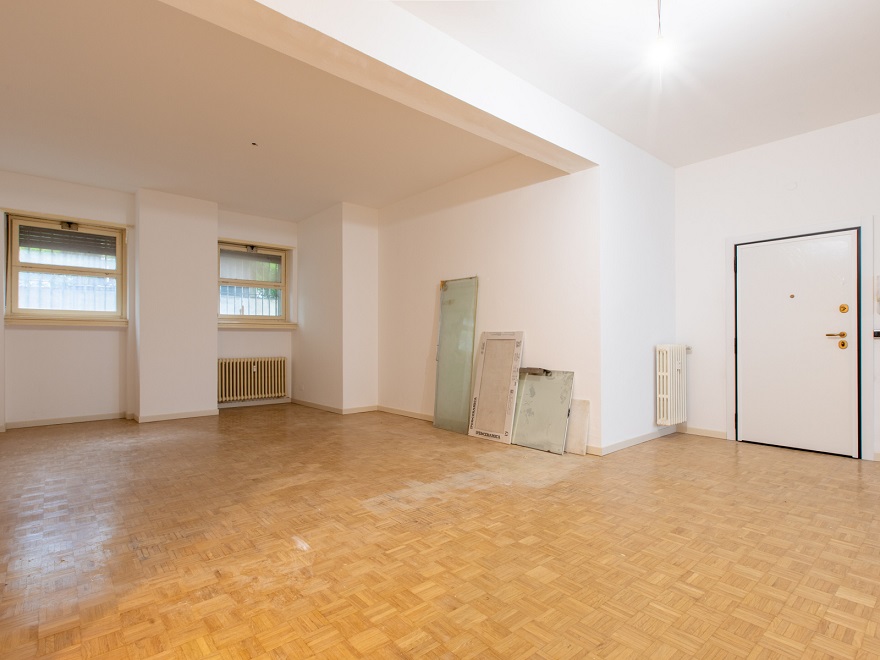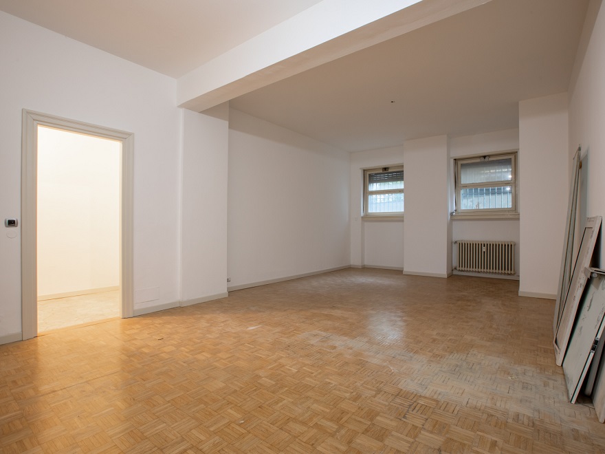 In stabile signorile degli anni 1960 con portineria, appartamento/ufficio di 95 mq (ora accatastato residenziale) al piano seminterrato composto da: